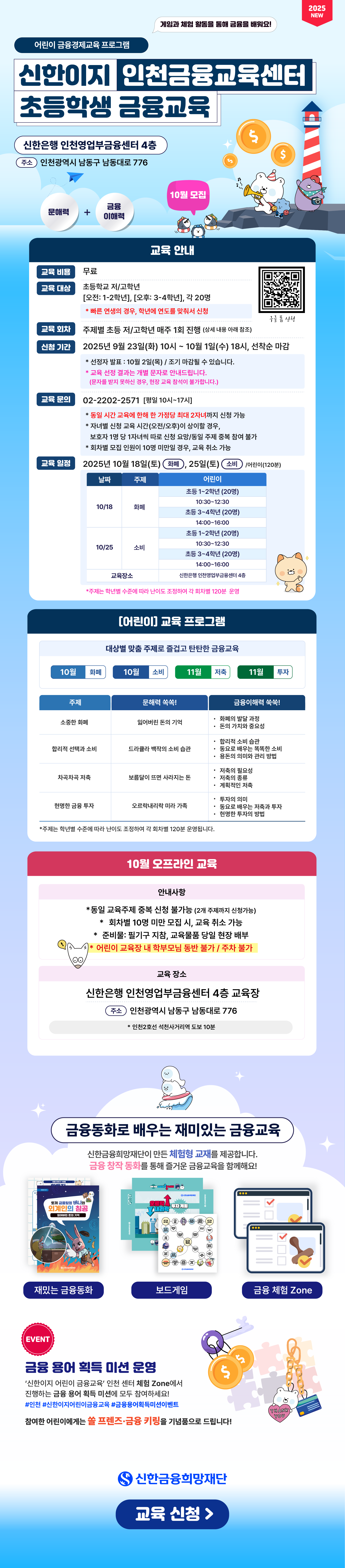 Home 공지사항 공지사항 신한이지(easy)에서 알려드립니다. (모집마감) 신한이지 인천금융교육센터 초등학생 금융교육 10월 교육 모집 안내(9/23~10/1) 파일 없음 등록일 2025.09.23 조회수 737