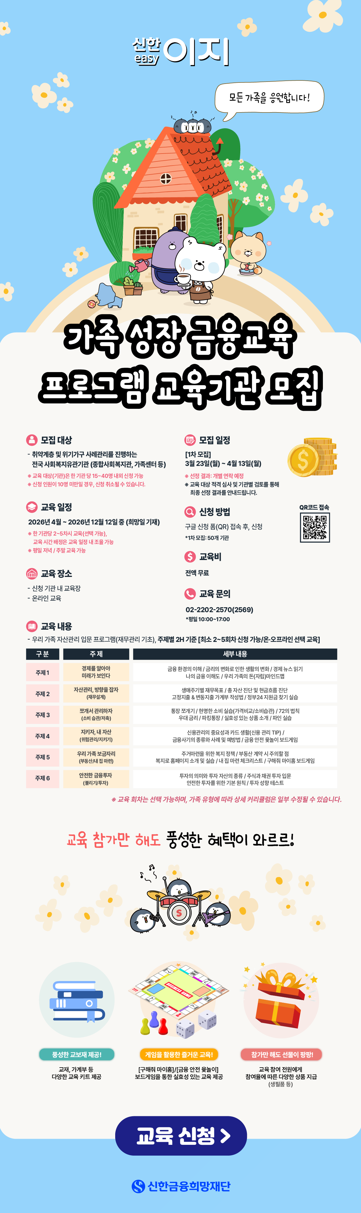 Home 공지사항 공지사항 신한이지(easy)에서 알려드립니다. 2026년 신한이지 '가족 성장 금융교육' 기관 모집(3/23~4/13) 파일 없음 등록일 2026.03.24 조회수 56